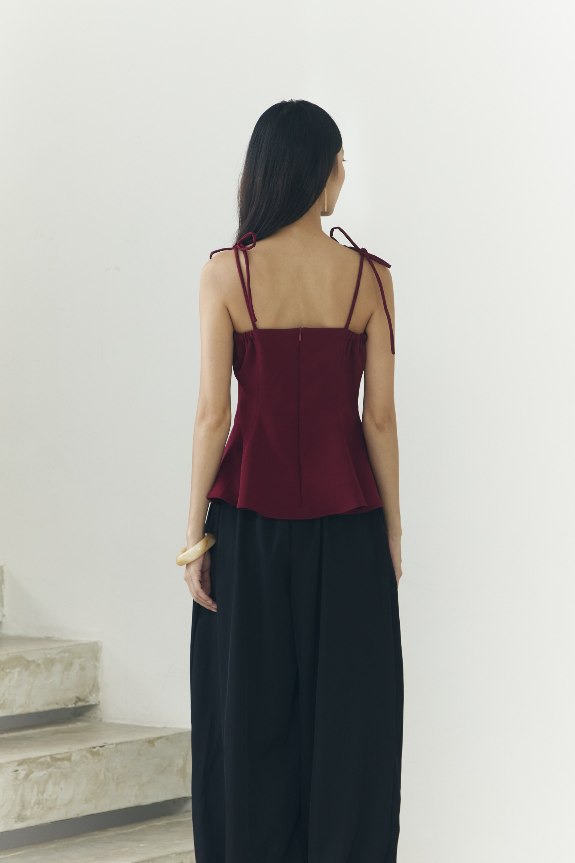 – Self tied shoulder straps