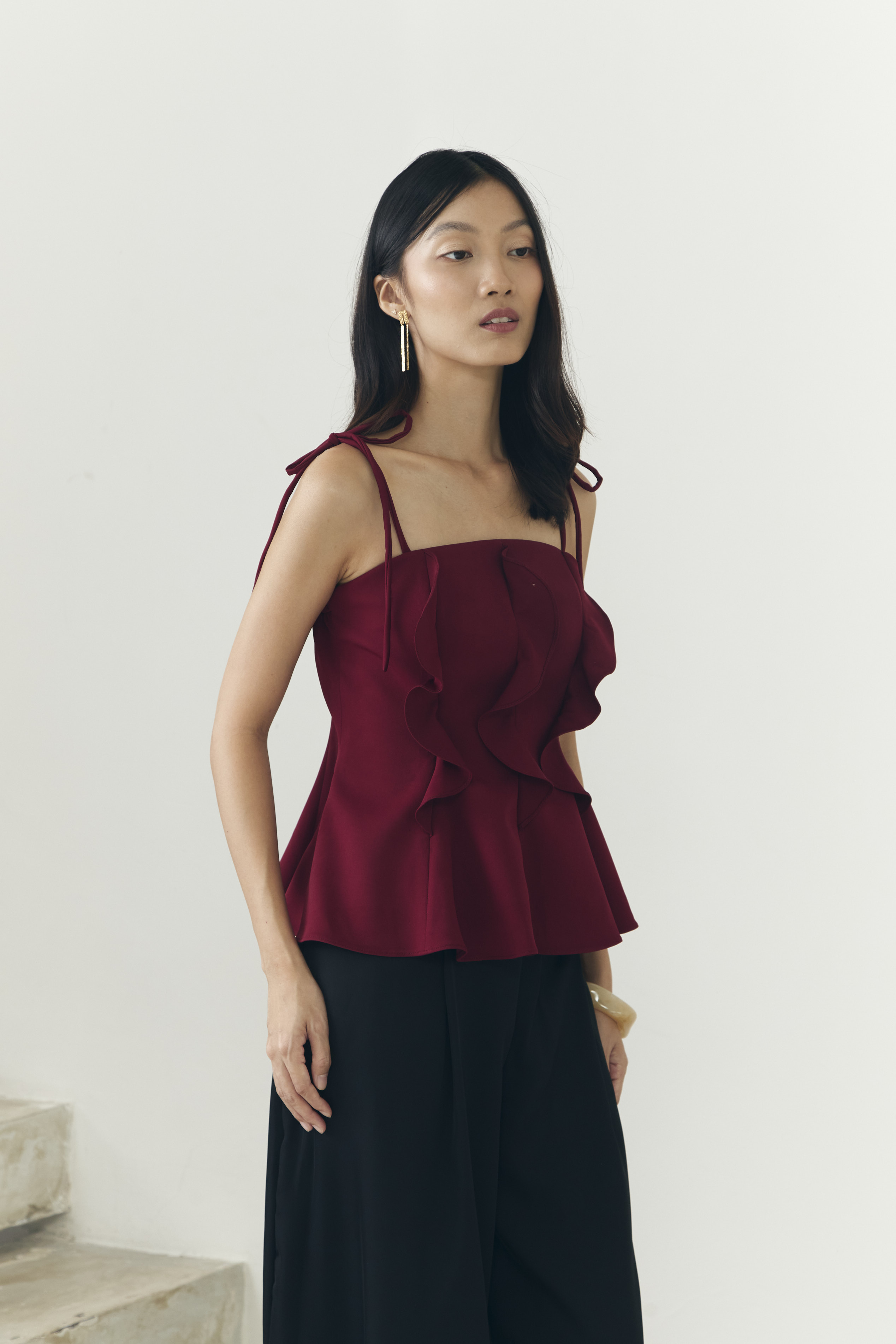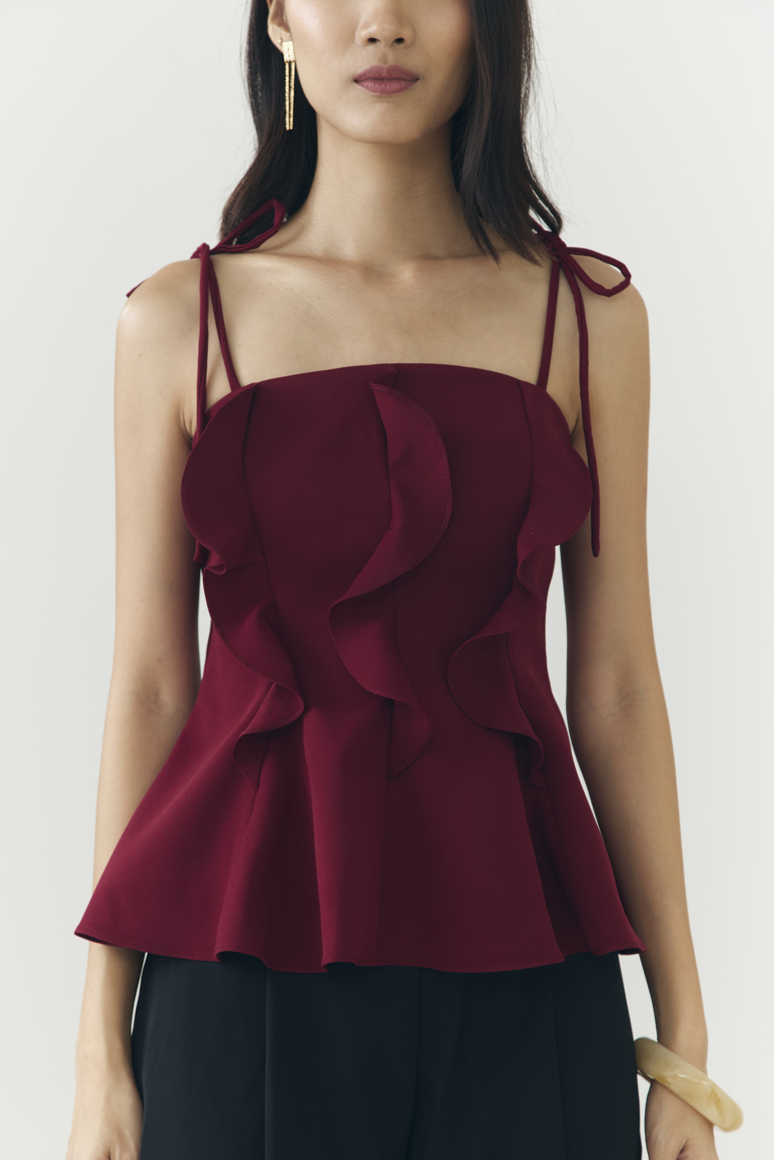 – Flattering ruffles on the front